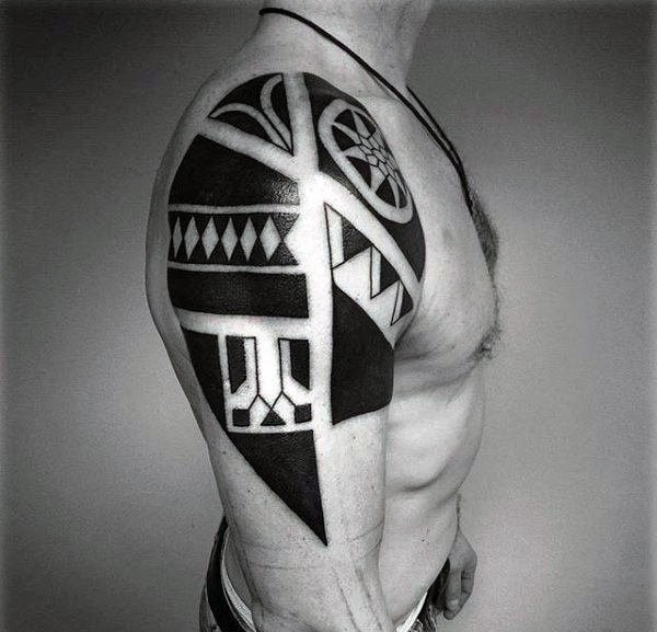 男性大臂膀上强健有力的黑色部落图腾纹身图案