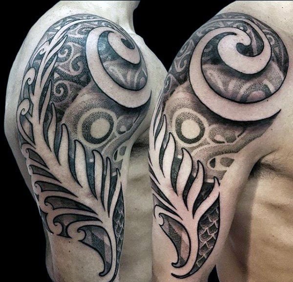 男性大臂膀上强健有力的黑色部落图腾纹身图案