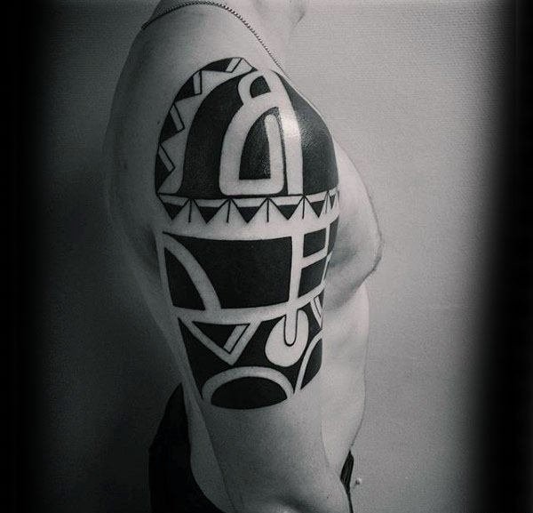 男性大臂膀上强健有力的黑色部落图腾纹身图案