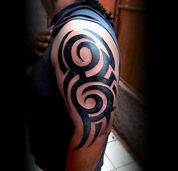 男性大臂膀上强健有力的黑色部落图腾纹身图案