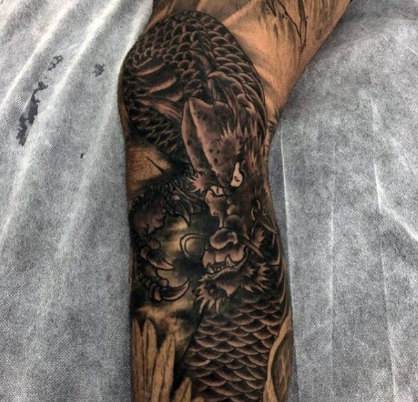 腿部鳌鱼纹身图案_腿部纹身图案大全_纹身图吧
