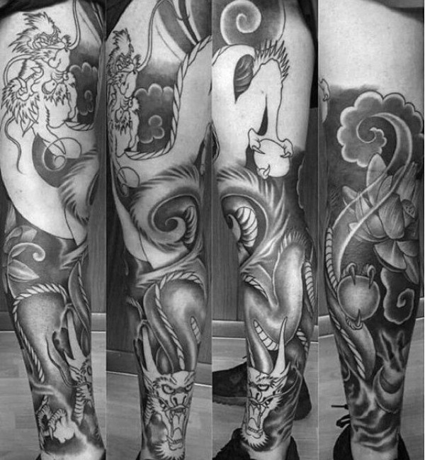 传统花腿纹身--18张传统风格的大花腿纹身图案作品