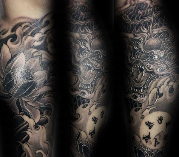 龙纹身手稿_一组老传统黑灰龙手稿纹身图案