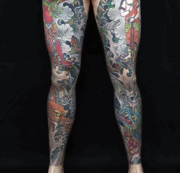 传统花腿纹身--18张传统风格的大花腿纹身图案作品