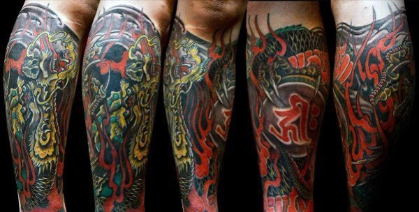 花腿纹身--一组大黑腿纹身图案作品欣赏