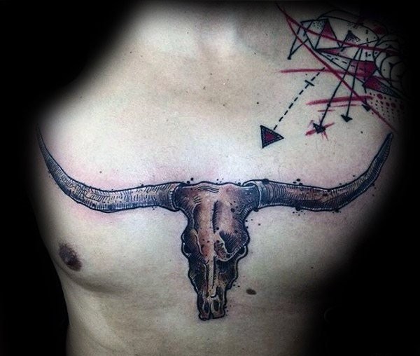 男性胸前霸气的大牛头纹身图案