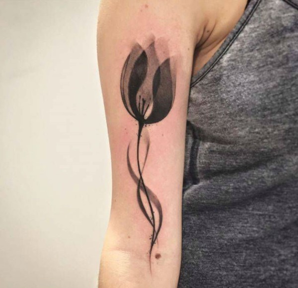 女孩代表着爱的宣言寓意的郁金香花纹身图案