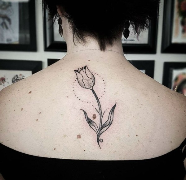 女孩代表着爱的宣言寓意的郁金香花纹身图案