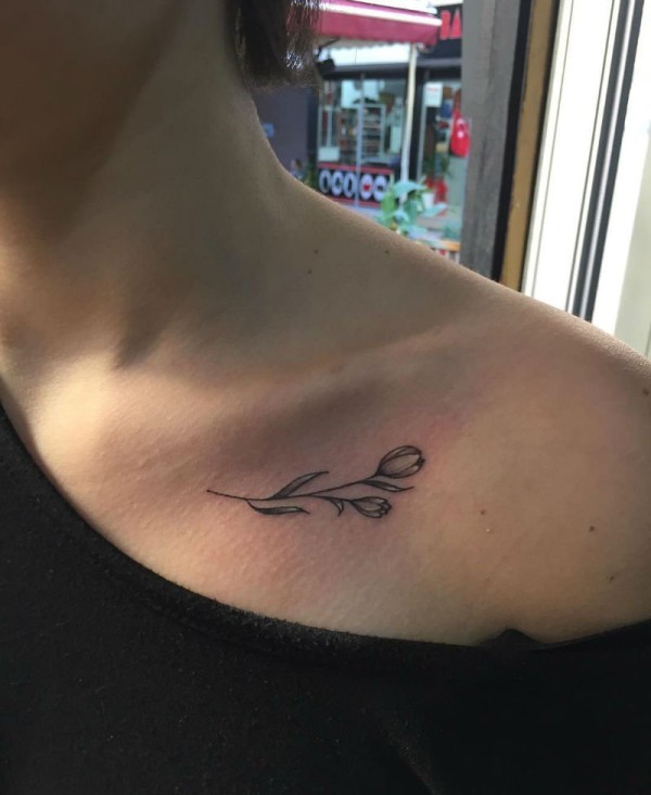 女孩代表着爱的宣言寓意的郁金香花纹身图案