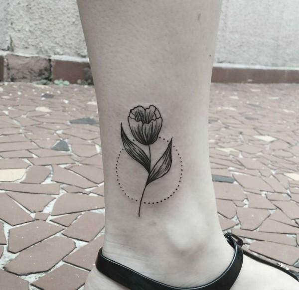 女孩代表着爱的宣言寓意的郁金香花纹身图案
