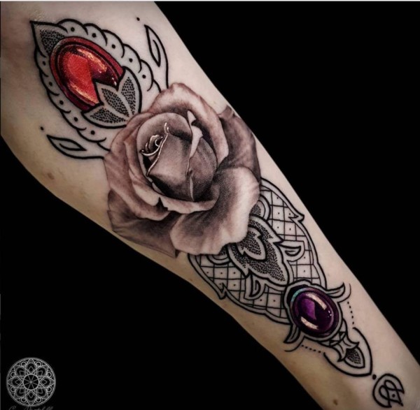 漂亮宝石来点缀的装饰风格黑色点刺纹身图案