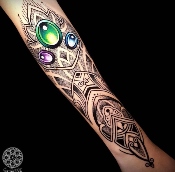 漂亮宝石来点缀的装饰风格黑色点刺纹身图案