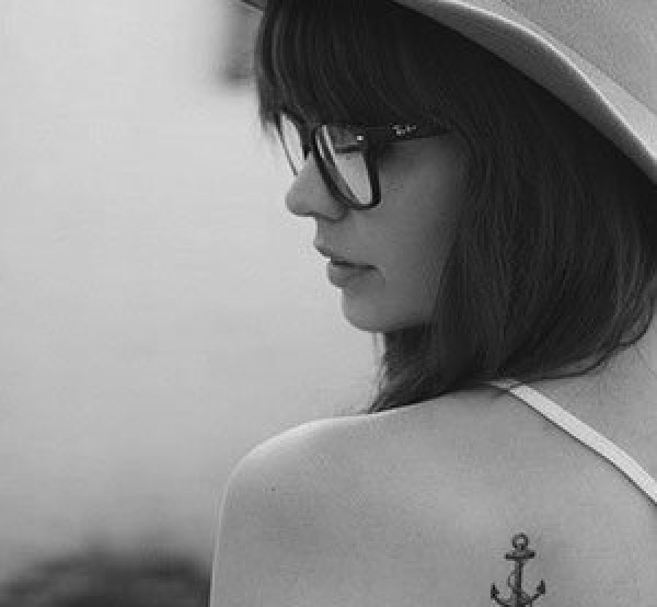 漂亮女孩钟情的小清新船锚纹身图案