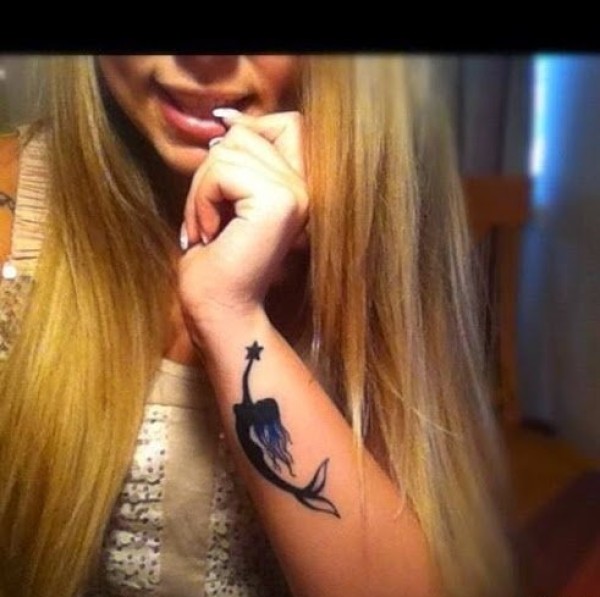 漂亮性感女孩身上美丽的美人鱼纹身图案鱼