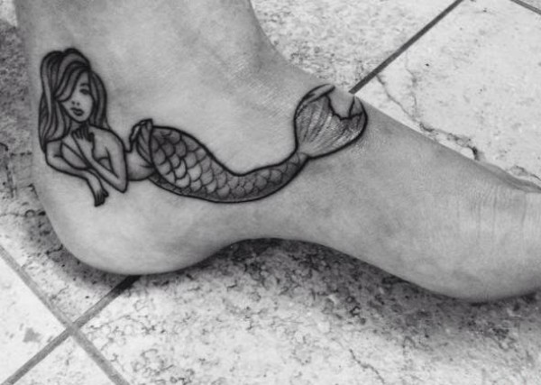 漂亮性感女孩身上美丽的美人鱼纹身图案鱼