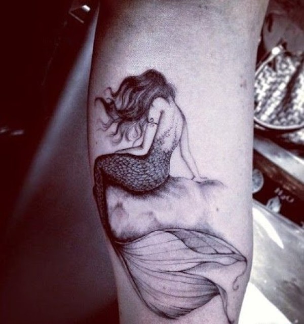 漂亮性感女孩身上美丽的美人鱼纹身图案鱼