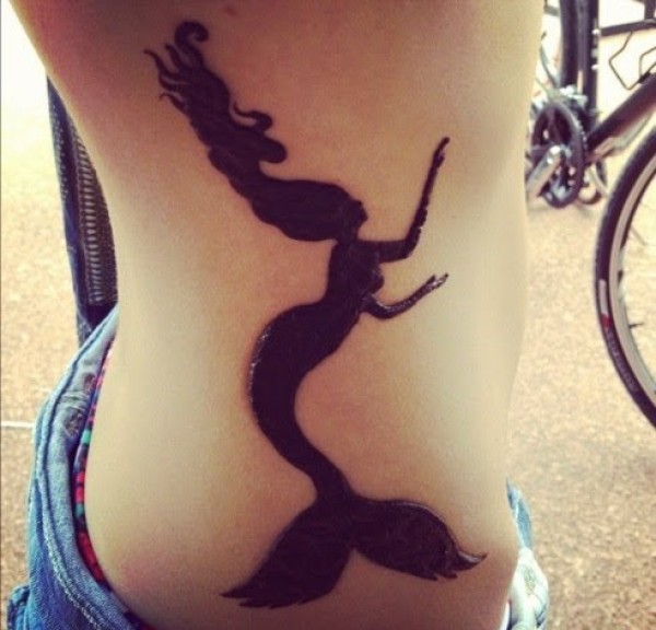漂亮性感女孩身上美丽的美人鱼纹身图案鱼