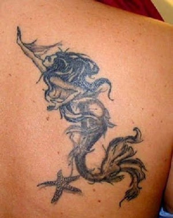 漂亮性感女孩身上美丽的美人鱼纹身图案鱼