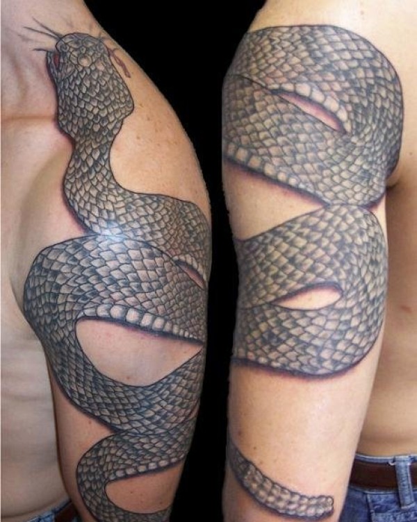 让人觉得恐怖的逼真的现实主义风格毒蛇纹身图案