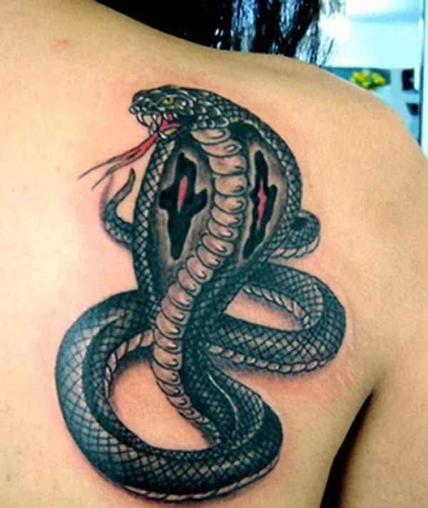 让人觉得恐怖的逼真的现实主义风格毒蛇纹身图案