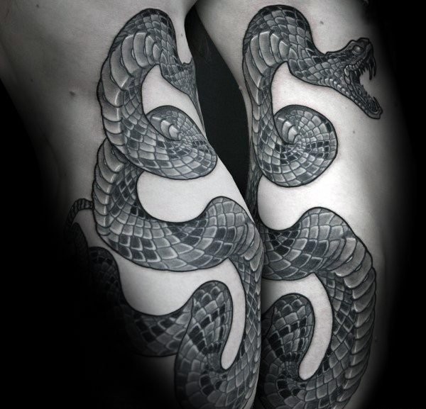 让人觉得恐怖的逼真的现实主义风格毒蛇纹身图案