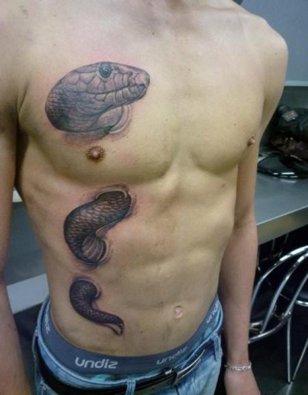 让人觉得恐怖的逼真的现实主义风格毒蛇纹身图案