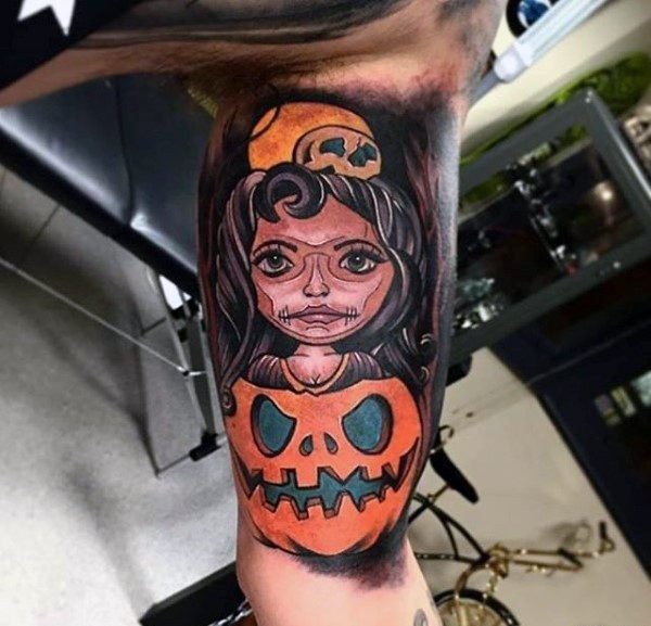 手臂上多款邪恶的南瓜怪物纹身图案