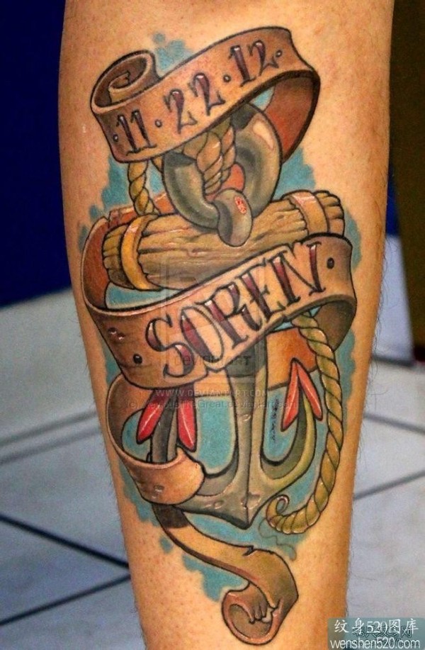 漂亮的船锚纹身图案