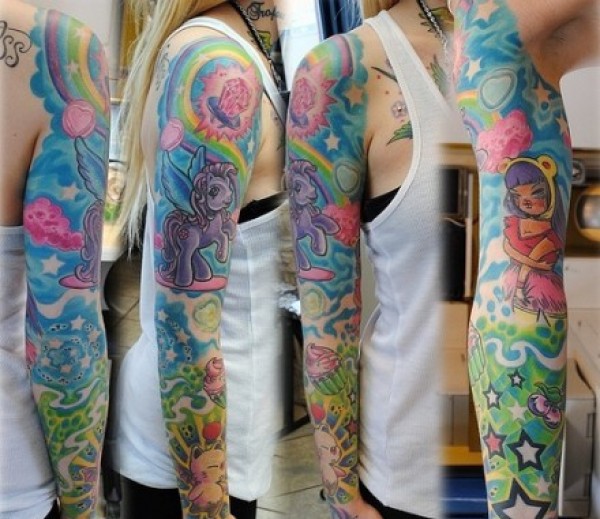 手臂彩色卡通娃娃独角兽五角星纹身图案纹身图片