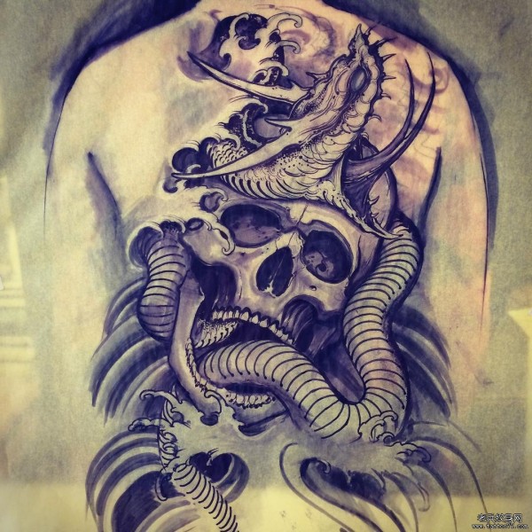 龙纹身手稿_一组老传统黑灰龙手稿纹身图案