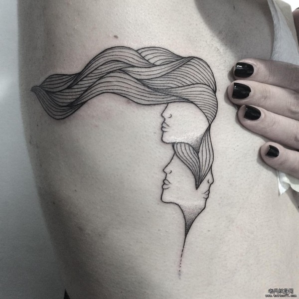 侧胸线条个性长发女郎纹身图案