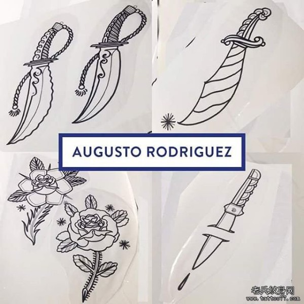 欧美各种匕首玫瑰纹身图案手稿