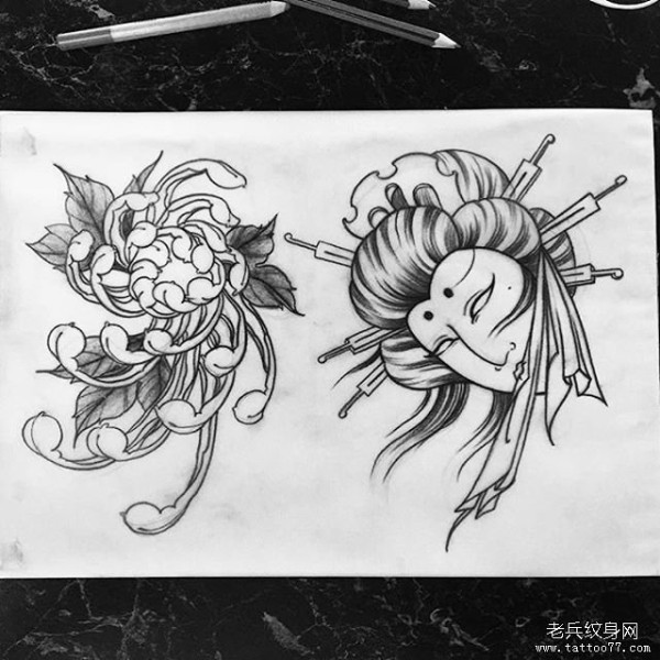 能面万媚纹身手稿_52张日式能剧面具纹身手稿图案素材欣赏