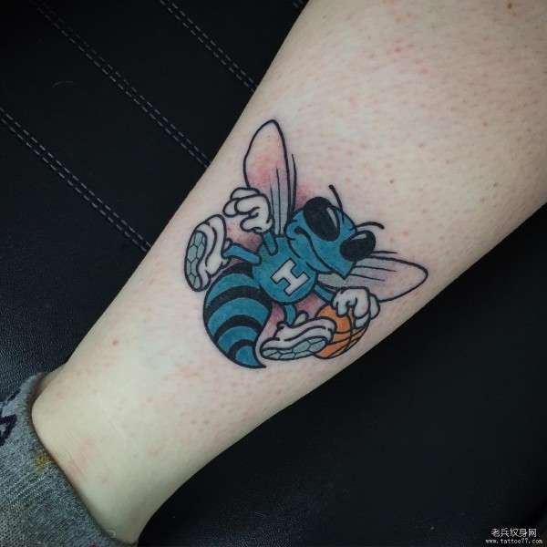 小腿彩绘欧美卡通蜜蜂纹身图案
