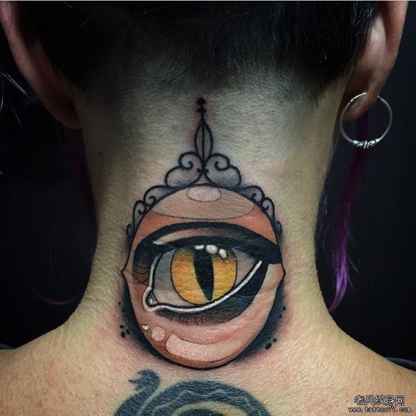 女生颈部new school彩绘个性的眼睛纹身图案