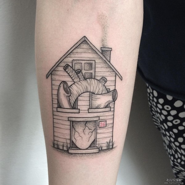 小臂心脏房子点刺个性的纹身图案