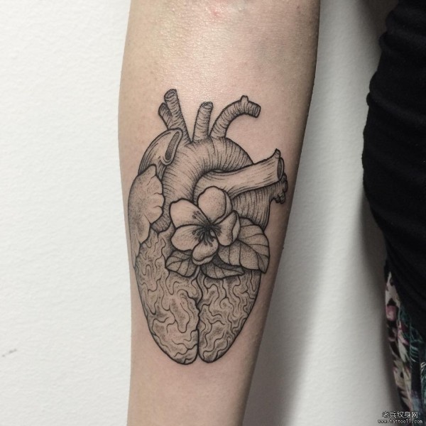 男人大臂黑白彼岸花骷髅_黑白纹身图案大全_纹身图吧