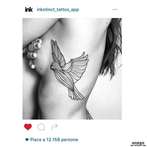 女生侧胸线条燕子纹身图案