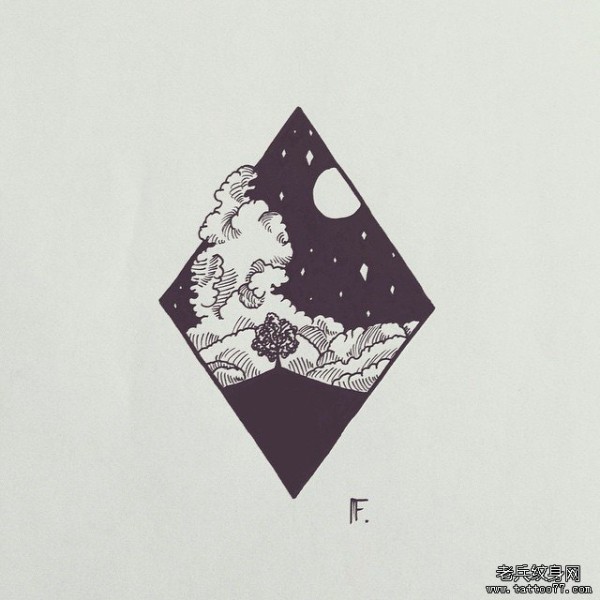 几何线条星空树纹身图案手稿