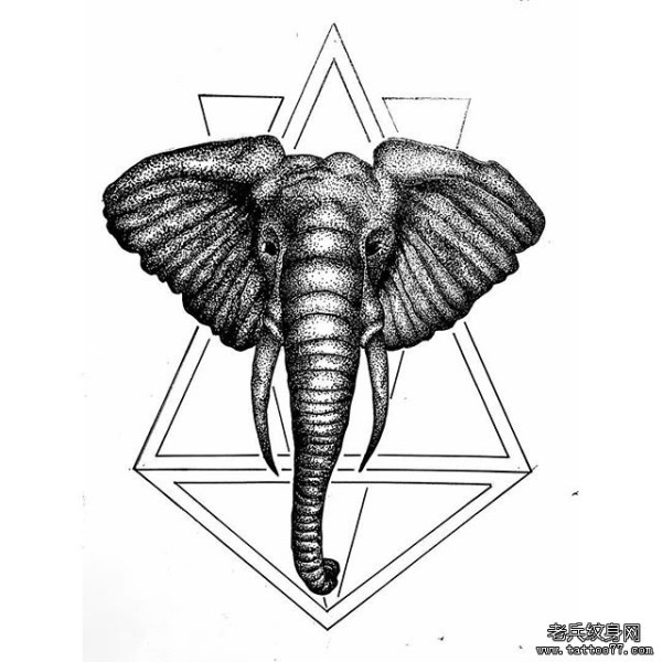 大象几何线条纹身图案手稿