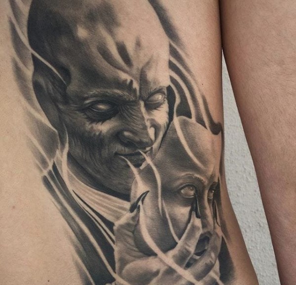 多款恐怖的黑灰色现实风格纹身图案来自乔恩