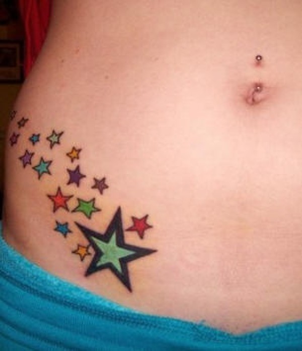 腹部彩色五角星纹身图案