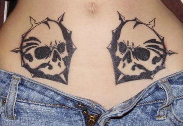 腹部黑色骷髅头纹身图案