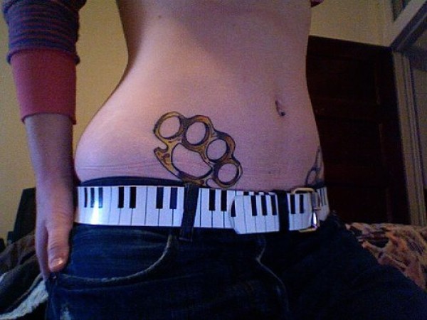 腹部彩色金属纹身图案
