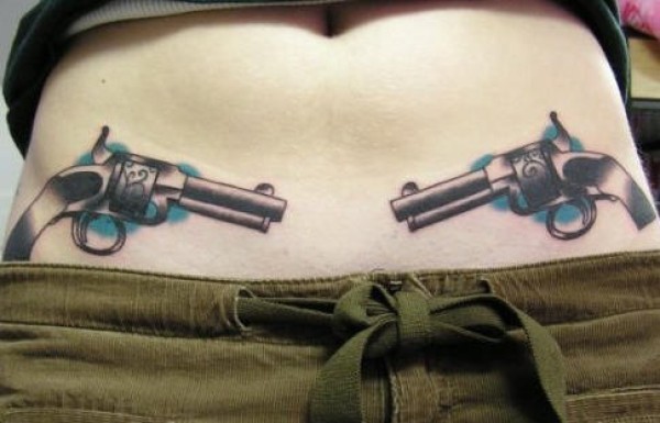 女生后腰纹身黑白灰风格抽象线条纹身图案