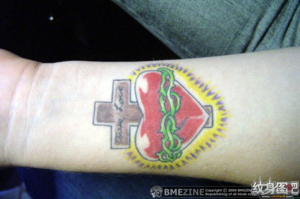 发光的红心和十字架纹身