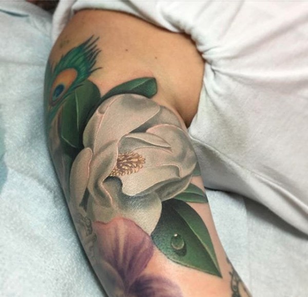 逼真的超现实主义花纹身图案来自纹身师莫拉莱斯