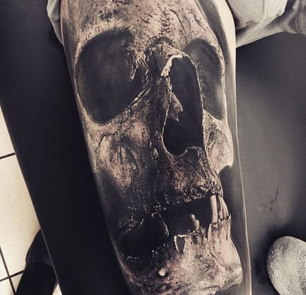 黑灰色现实风格恐怖的骷髅头纹身图案