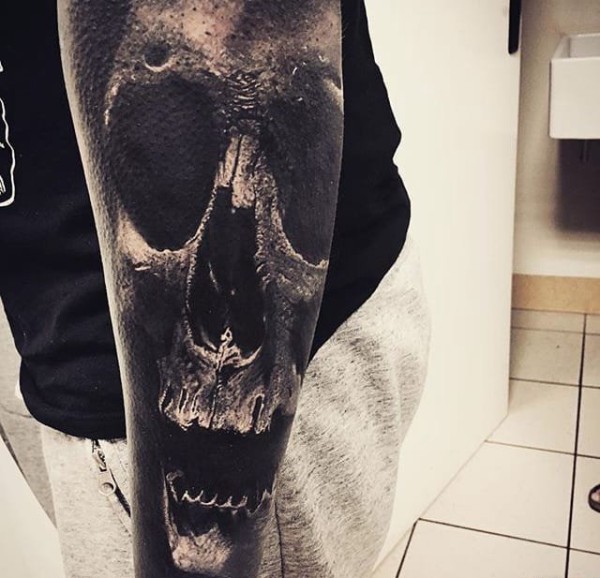 黑灰色现实风格恐怖的骷髅头纹身图案