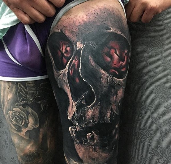 黑灰色现实风格恐怖的骷髅头纹身图案